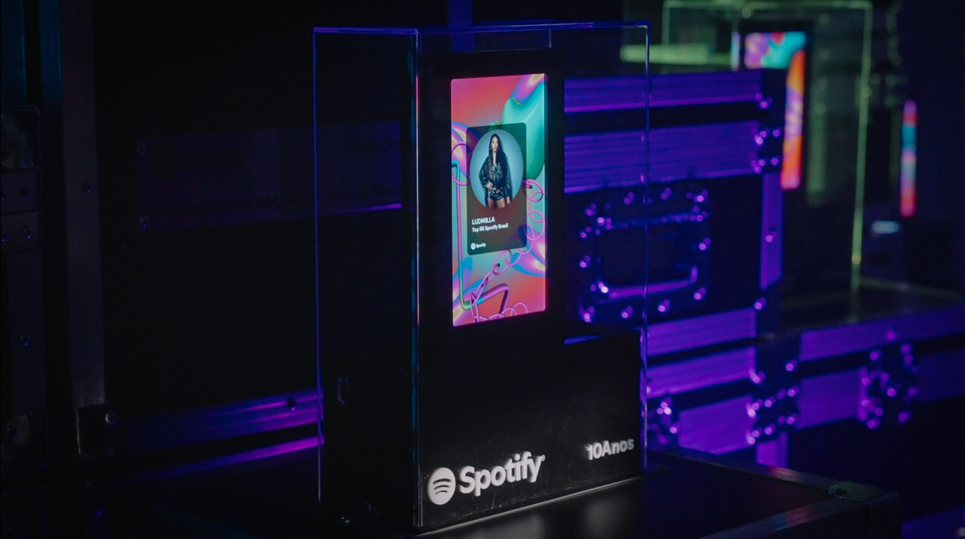 Bloco Awards trophy celebrates Spotify’s 10-year milestone in Brazil. Each trophy was created through a generative design and code system, transforming data from the top 50 artists of the decade - like the most-played song and total streams - into a unique visual identity displayed on the built-in screen.