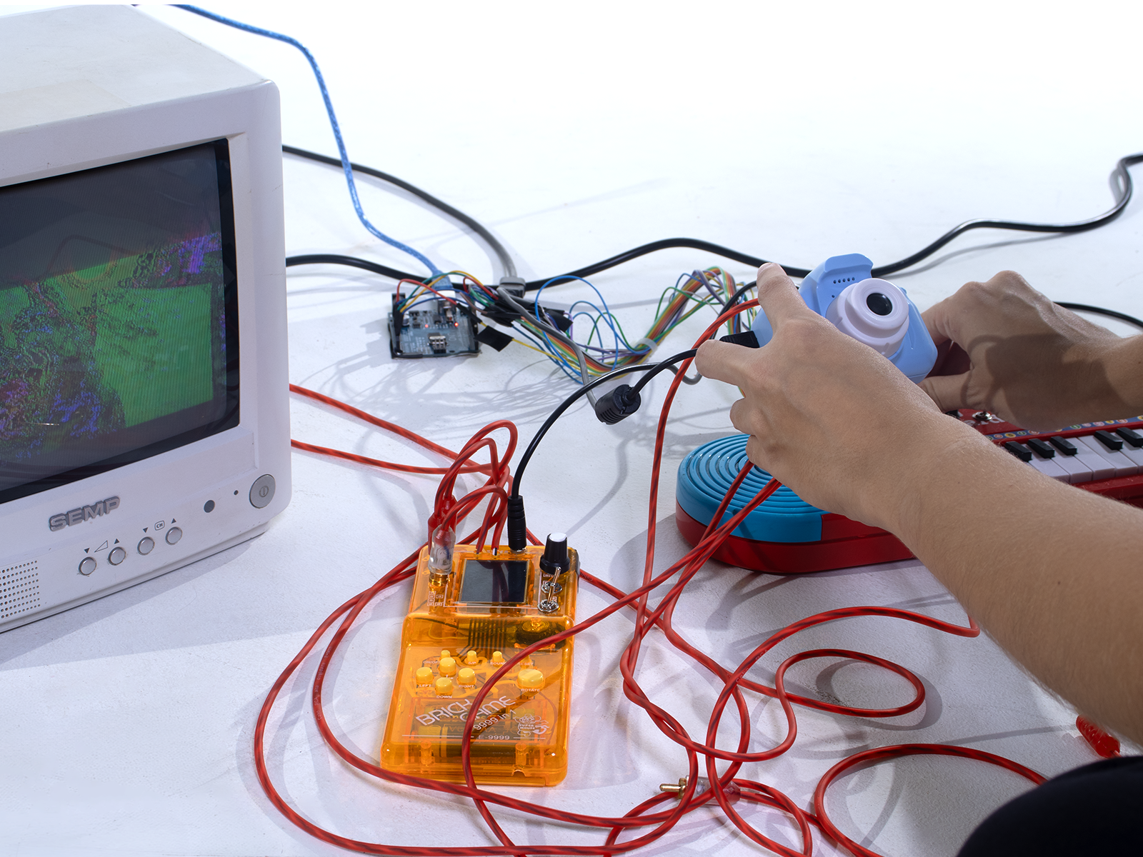 Gambiarra is an interactive installation investigating brazilian spontaneous design and our relationship with technology. Built from second-hand materials and low-cost electronics reinterpreted through circuit bending, the project encourages the modification of everyday objects to explore new, improvised functionalities.